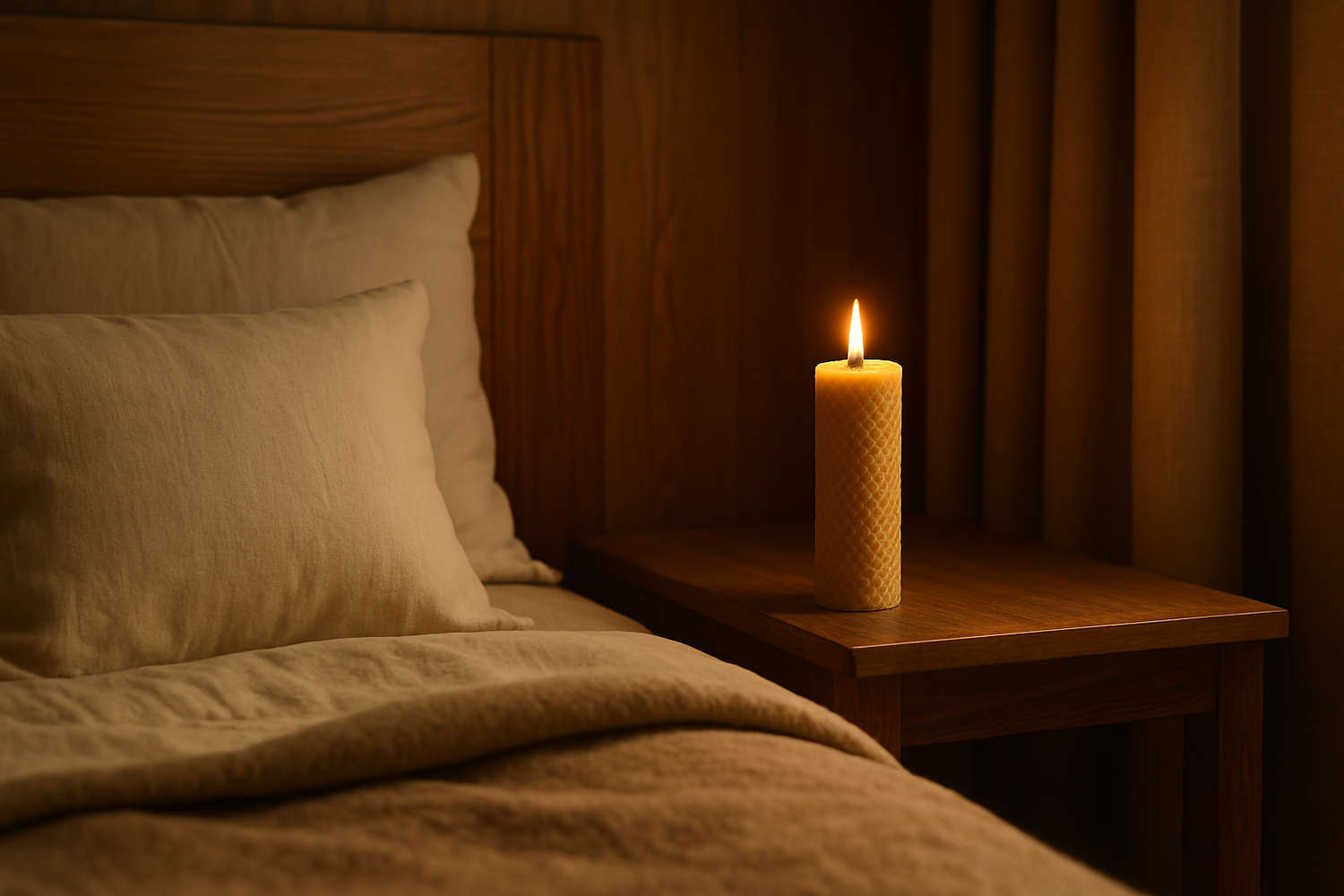 Roen kommer når skjermen slukkes – og lyset tennes. I stedet for kunstig blålys, bruk et bivokslys for å roe ned kroppen før søvn.Flammen påvirker nervesystemet, og duften av honning gir trygghet og varme.