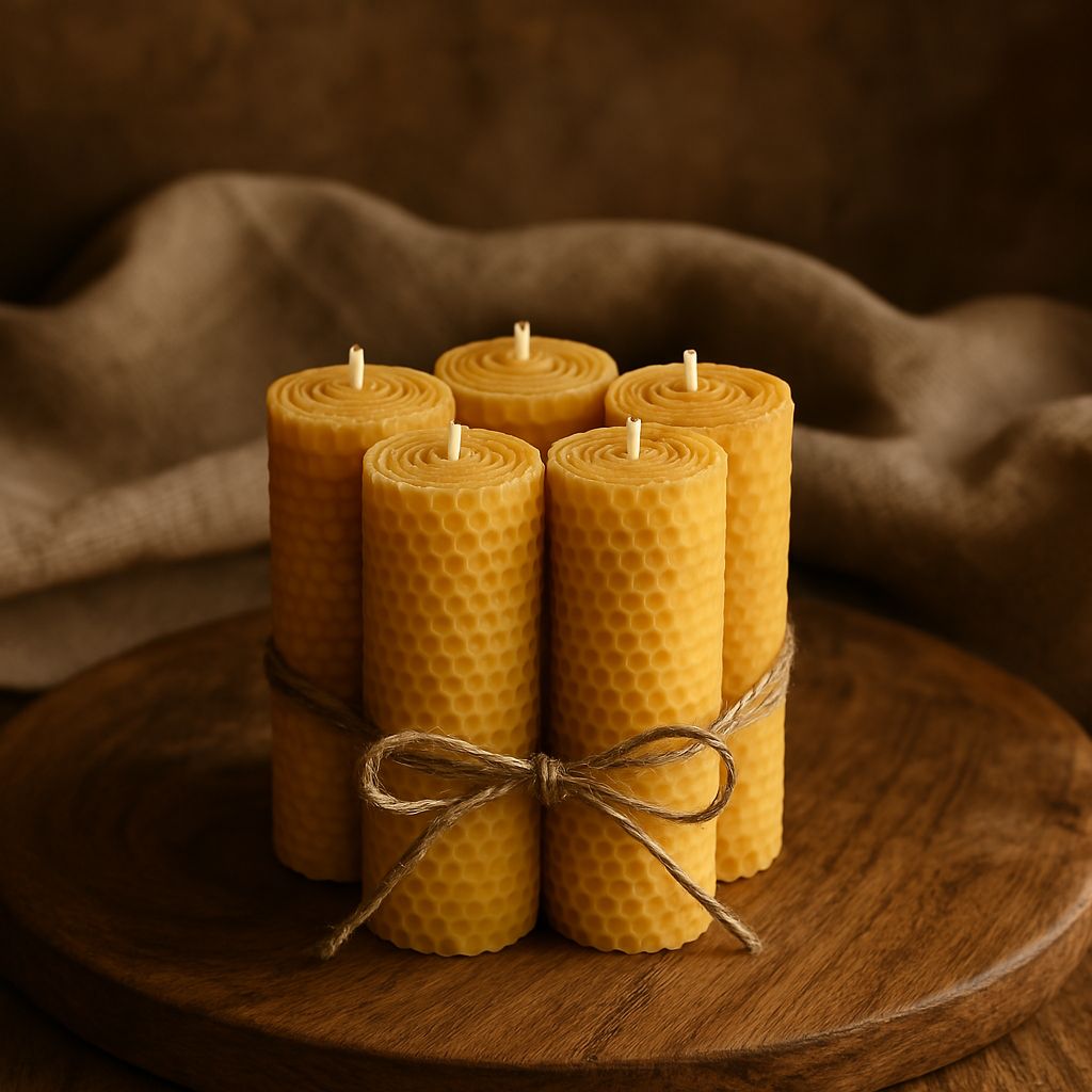Dette elegante kronelyset er håndrullet med kjærlighet og omtanke, laget av ren, naturlig bivoks. Lyset har en mild, behagelig duft, gir en varm og koselig stemning, og brenner rent og rolig. Perfekt til rolige stunder, hyggelige middager eller som en unik gave til noen du bryr deg om.